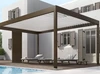 Pergola aluminiomu jẹ ti aluminiomu alloy pẹlu sisanra ti 2.0mm-3.0mm. O ti pari pẹlu ideri lulú fun agbara ati pe o wa ni awọn awọ aṣa. Pergola ni irọrun kojọpọ ati pe o jẹ ọrẹ-aye, isọdọtun, ẹri rodent, ẹri rot, ati mabomire. O tun ni eto sensọ ojo ti o wa.